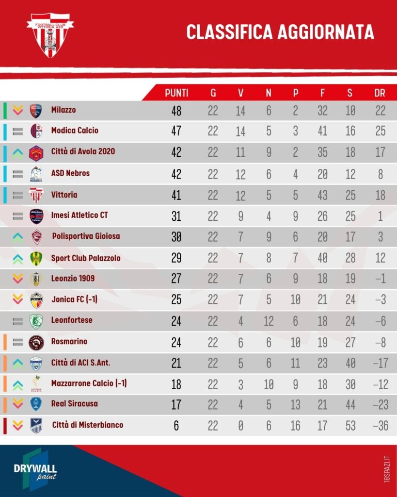 Finisce in pareggio, 2-2 tra Rosmarino e FC Vittoria, un punto importante per la classifica, ma la squadra si sta già preparando per la prossima sfida in casa! Continuiamo a tifare e a far sentire il calore di tutti voi tifosi! Grazie per il vostro sostegno!